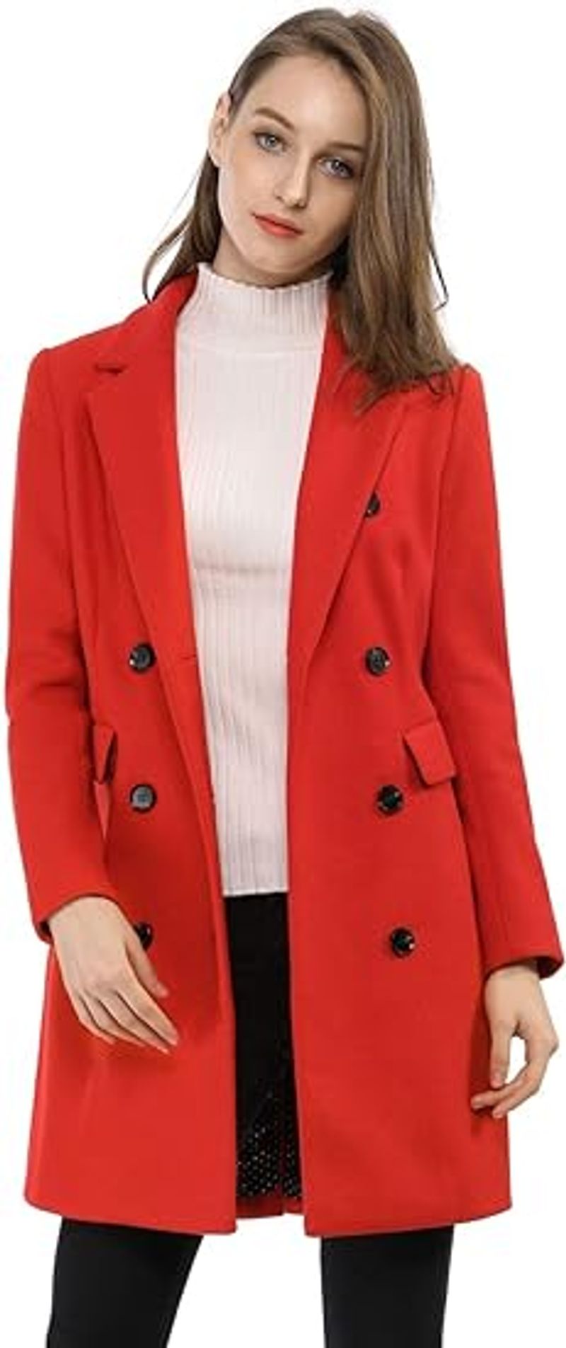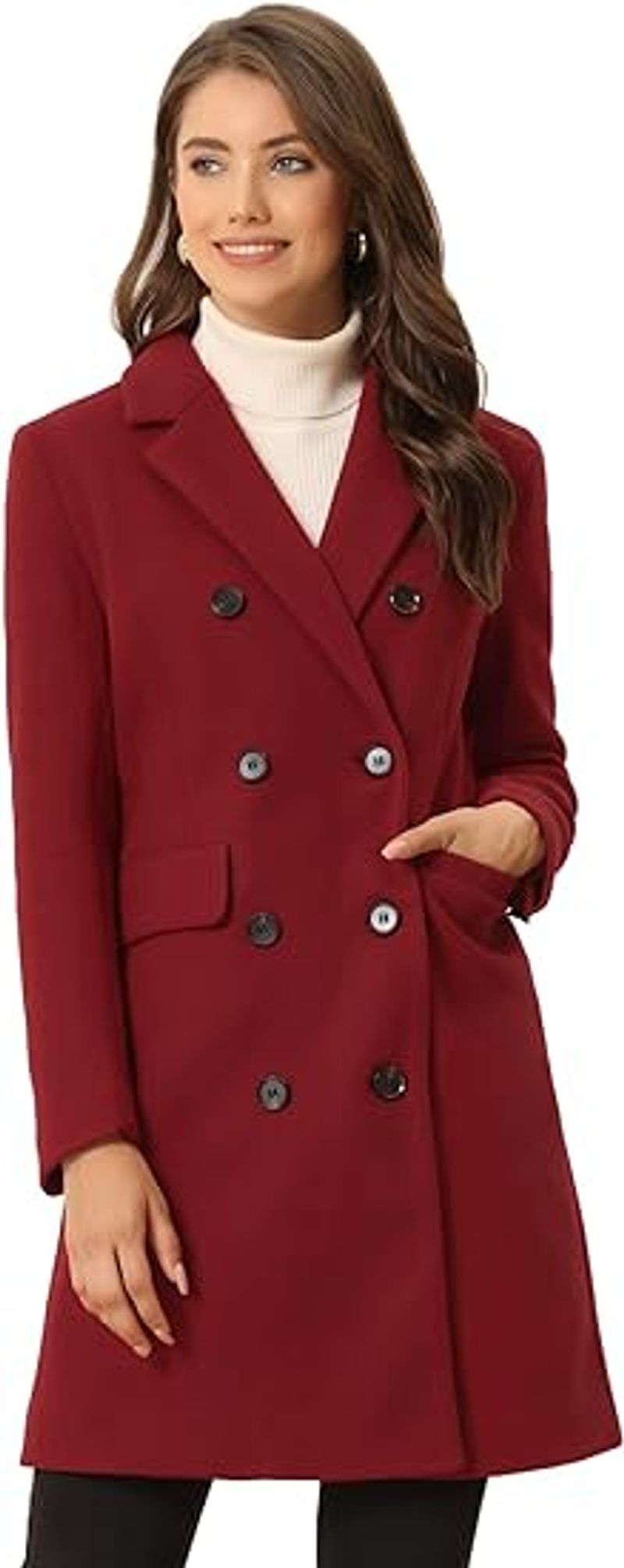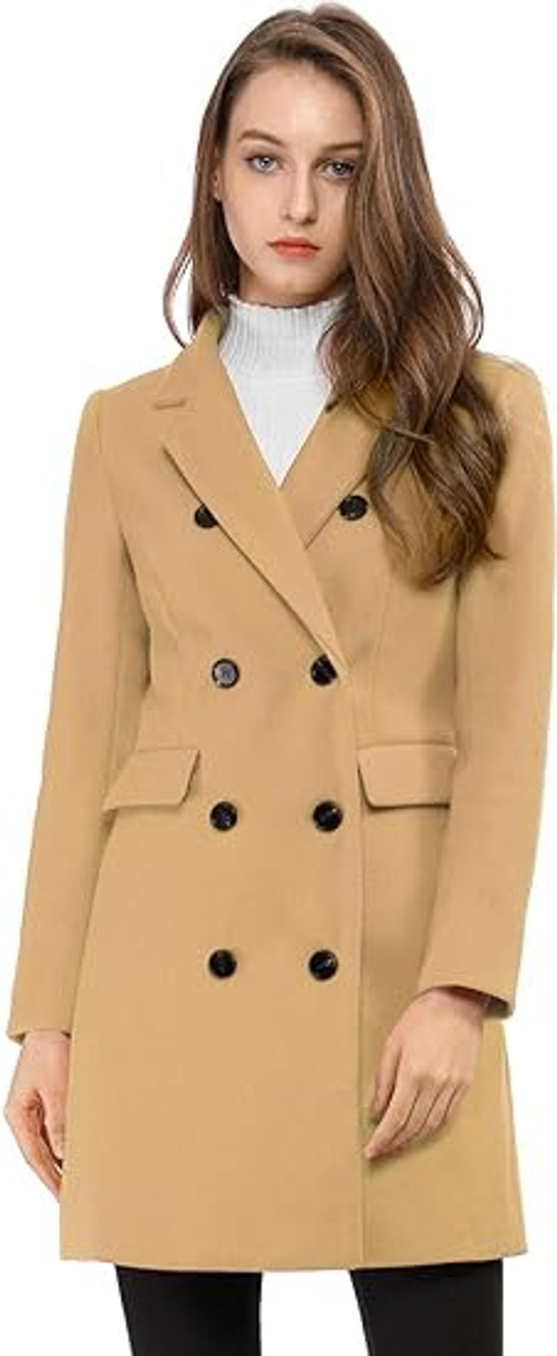 Allegra K Women's Winter Coat Elegant Notched Lapel Double Breasted Trench Coat