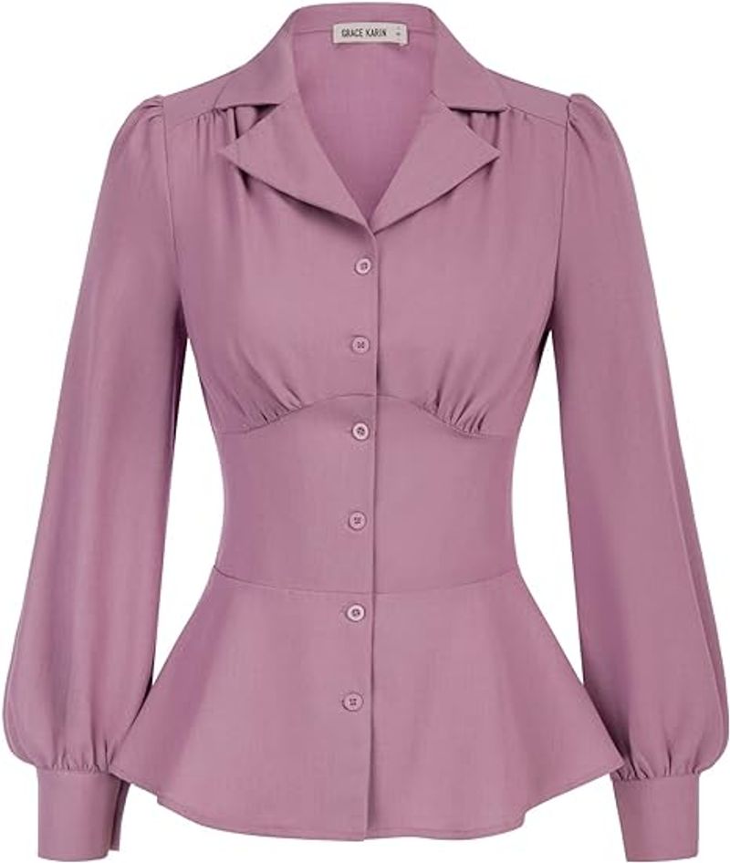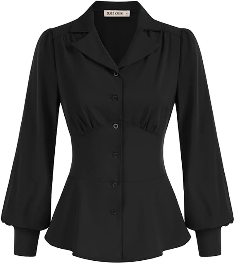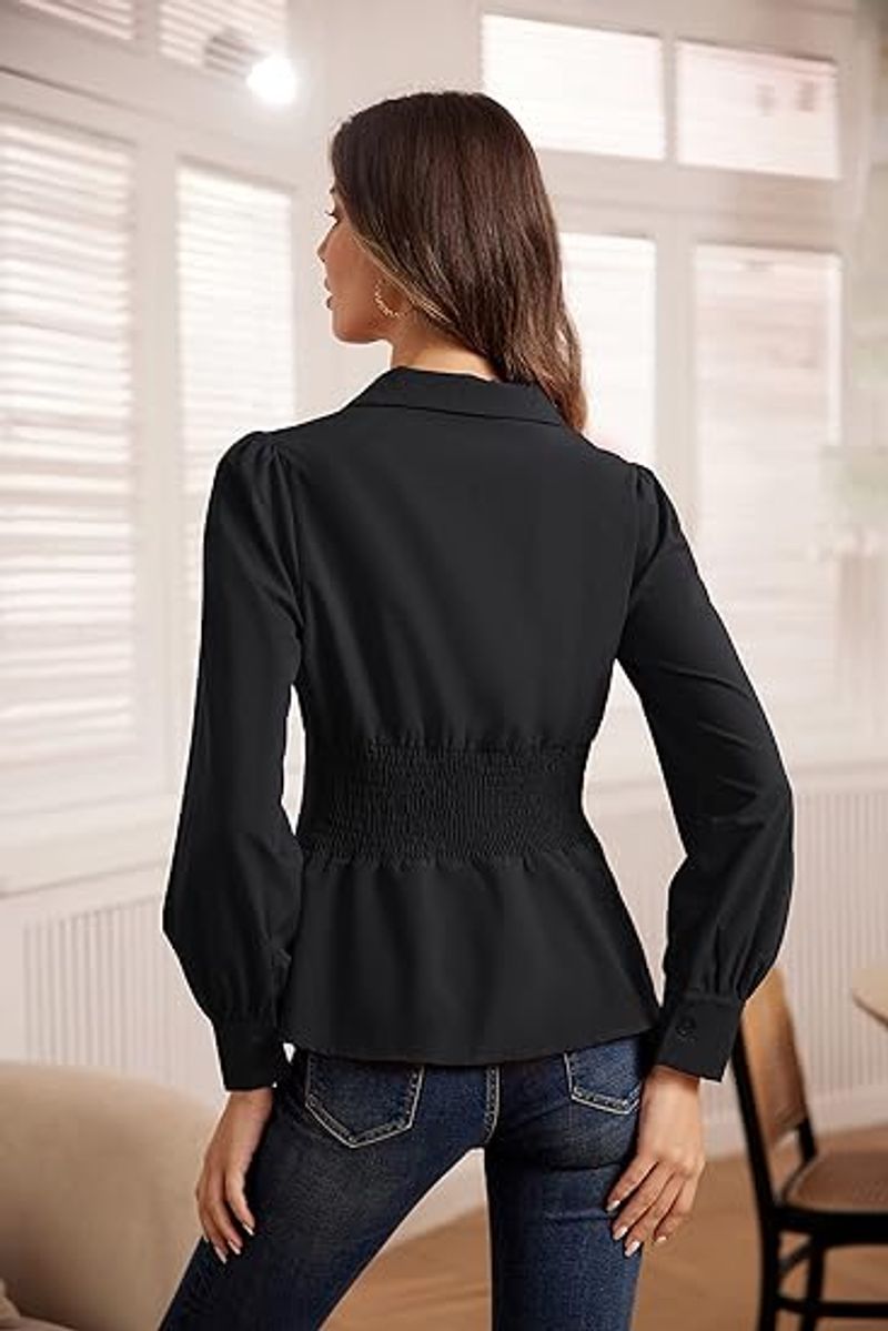 【Chic Design】This womens button down top features turn-down collar, long sleeves, solid color, the smocked back waist and peplum blouse design highlights your curves and makes you look stunning.
