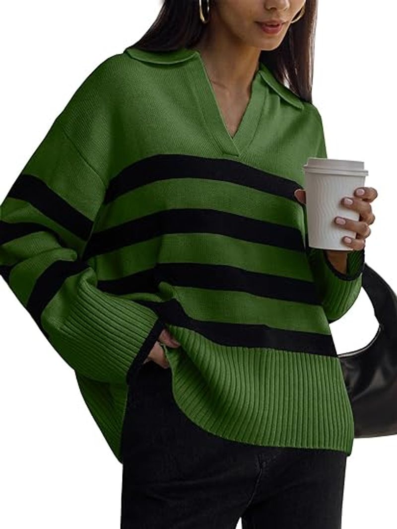 Features: Women classic slouchy sweater, long sleeves, casual, loose-fitting, V neck, pullover, slouchy, slightly oversized sweater, sweater aesthetic, striped print, baggy sweater, a charming feminine runs through the body. Show off your fashion and elegance.